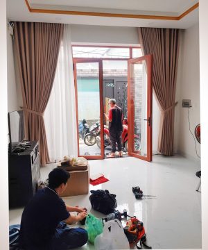 Với những bộ rèm cửa chính có chiều cao thông tầng ấn tượng, đội ngũ kỹ thuật của Thiên Kim đã thực hiện lắp đặt vô cùng tỉ mỉ. Chúng tôi chú trọng gia cố thanh ray âm trần chắc chắn, đảm bảo rèm vận hành êm ái, nhẹ nhàng dù bộ rèm có kích thước lớn và trọng lượng nặng.
