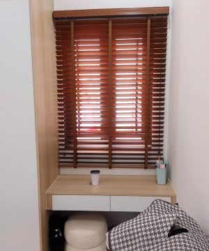 Tại các ô cửa sổ và đặc biệt là góc kính chữ L, Thiên Kim đã khéo léo lắp đặt hệ thống rèm sáo gỗ cao cấp.