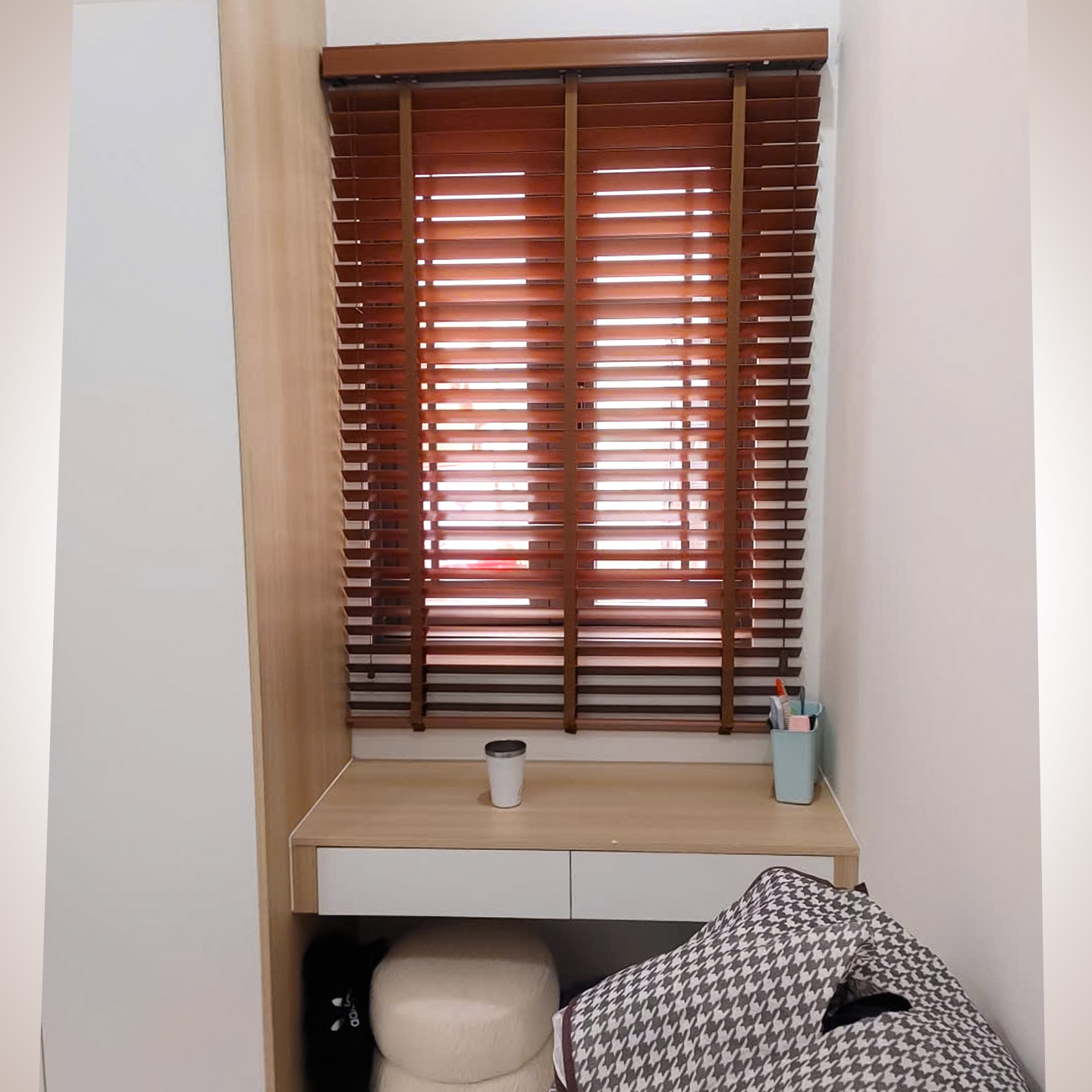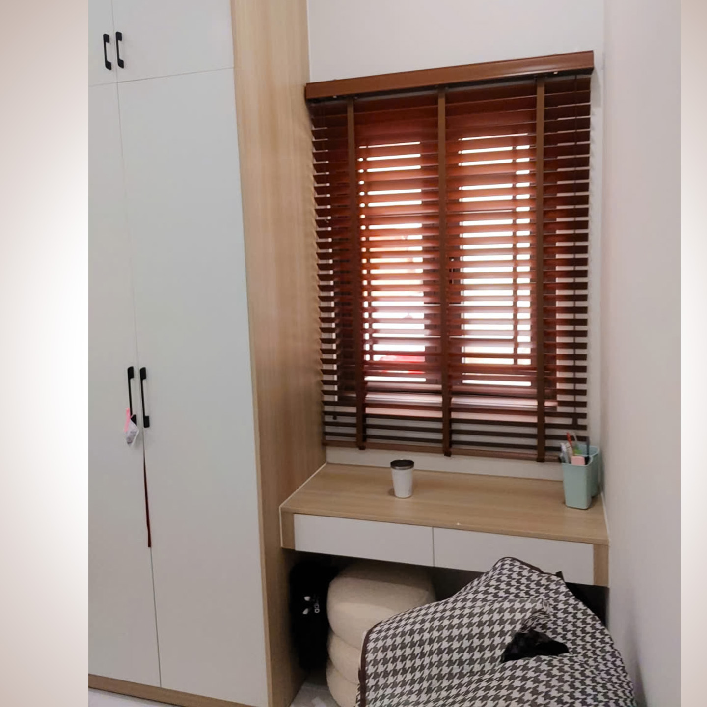 Công năng ưu việt: Rèm sáo gỗ không chỉ mang lại vẻ đẹp tân cổ điển, sang trọng mà còn giúp điều tiết ánh sáng linh hoạt chỉ bằng một thao tác xoay lật. Sắc gỗ nâu trầm hòa quyện cùng nội thất tạo nên cảm giác ấm cúng, gần gũi với thiên nhiên.