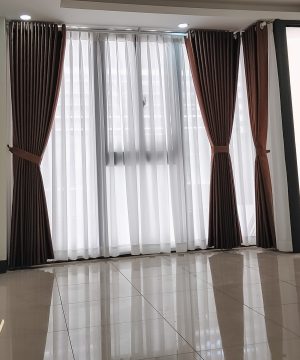 | Kỹ Thuật May | Vải chính xỏ lỗ (Oze), Voan xếp ly hoặc xỏ lỗ tùy vị trí. Đường may tỉ mỉ, Lai rèm 10cm, gấp biên 4cm – Đảm bảo sóng rèm đều, đứng dáng và độ rủ hoàn hảo cho cửa cao. |