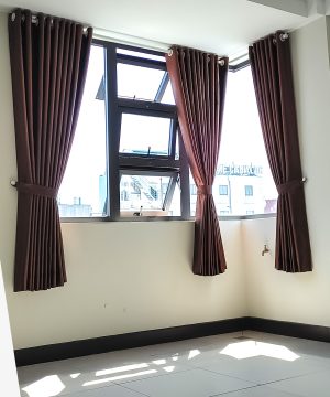 Lầu 3 và Lầu 4: Lắp đặt Rèm 1 Lớp (chỉ vải chính). Với cửa sổ góc độc đáo \ và cửa ban công , rèm 1 lớp bằng chất liệu Blackout 3 lớp vẫn đảm bảo yêu cầu cản sáng cao (95-98%) và tạo sự gọn gàng, hiện đại.