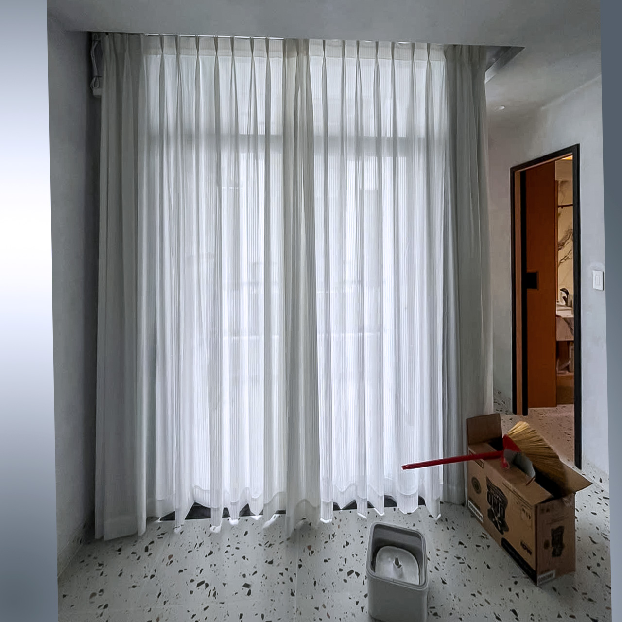- Chất liệu đồng bộ & Vận hành: Tất cả rèm voan (bao gồm voan phòng khách và ban công) đều được làm từ 100% Polyester. Mặc dù phòng ngủ sử dụng rèm tự động, các khu vực khác như phòng khách (đối với rèm vải chính và voan) và ban công vẫn được thiết kế đóng mở rèm bằng tay để đảm bảo sự linh hoạt và tiện lợi trong sử dụng hàng ngày.
