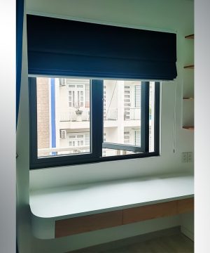 - Màu sắc & Chất liệu: Rèm Roman được lựa chọn với tông màu xanh đậm (tương tự màu vải chính của rèm 2 lớp), tạo sự đồng bộ và tinh tế cho toàn bộ không gian phòng ngủ. Vải làm rèm Roman là loại cao cấp 100% Polyester, được thiết kế đặc biệt để chống nắng tuyệt đối, đảm bảo không gian riêng tư và mát mẻ cho giấc ngủ.