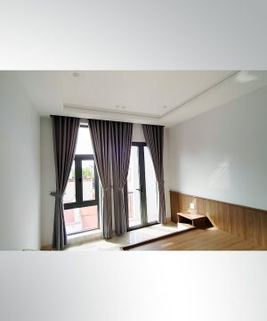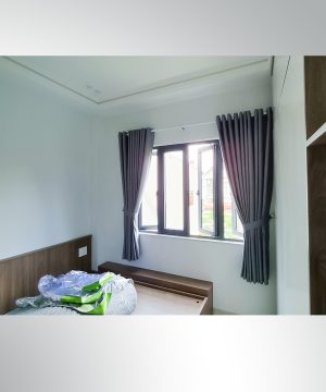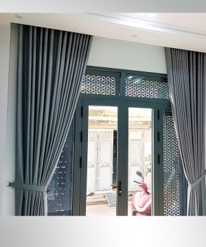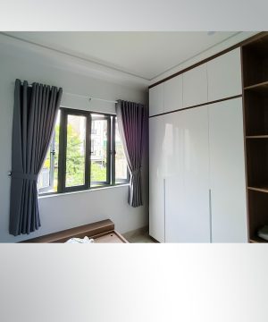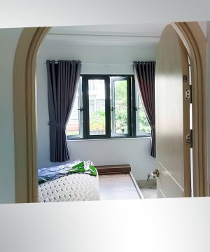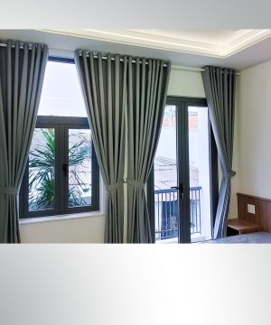- Phòng ngủ phía sau: Với một ô cửa sổ lớn, gia chủ tiếp tục tin tưởng lựa chọn mẫu rèm vải 3 lớp tương tự. Điều này không chỉ đảm bảo hiệu quả cản sáng, chống nóng tối ưu, tạo không gian nghỉ ngơi yên tĩnh, thư thái mà còn duy trì sự đồng bộ về phong cách và chất lượng cho toàn bộ ngôi nhà.