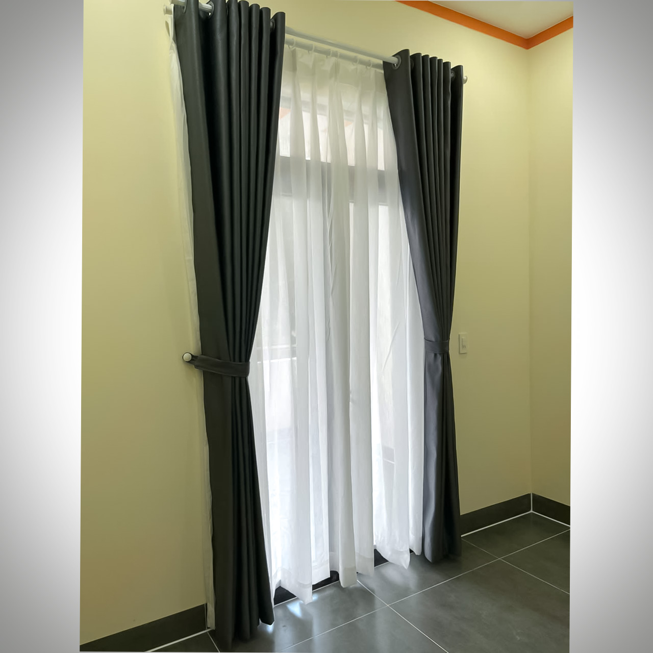 - Lớp Voan Trắng: Nằm phía trong, lớp voan mỏng với họa tiết tinh tế giúp lọc ánh sáng tự nhiên một cách mềm mại. Khi bạn cần sự riêng tư nhưng vẫn muốn căn phòng tràn ngập ánh sáng, chỉ cần vén lớp rèm vải chính và giữ lại lớp voan. Ánh sáng sẽ được khuếch tán nhẹ nhàng, tạo hiệu ứng lung linh, lãng mạn cho căn phòng mà không gây chói mắt.