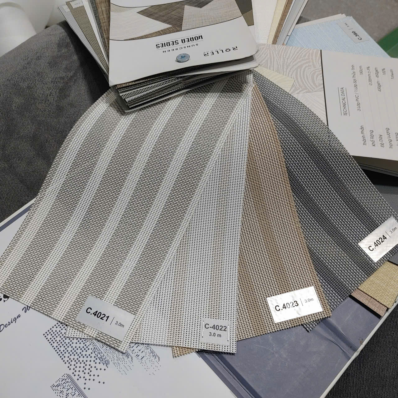 - Vải lưới: Rèm cuốn lưới thường được làm từ vật liệu polyester hoặc sợi tổng hợp khác với cấu trúc lưới mỏng. Vải lưới có các lỗ nhỏ để ánh sáng có thể lọt qua mà không làm mất hoàn toàn tầm nhìn.