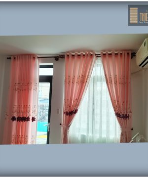 - Chất liệu: Rèm dày, rèm chống nắng để hạn chế ánh nắng gắt buổi chiều.