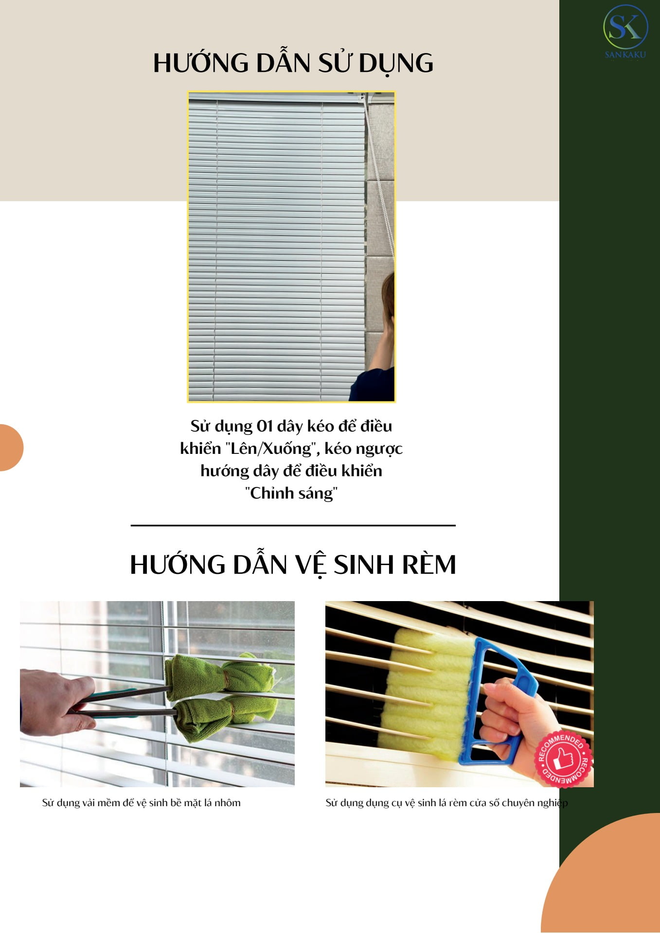 | 6. Cơ chế hoạt động: | Kéo rèm bằng tay và rèm được xếp gọn lên trên đầu rèm |