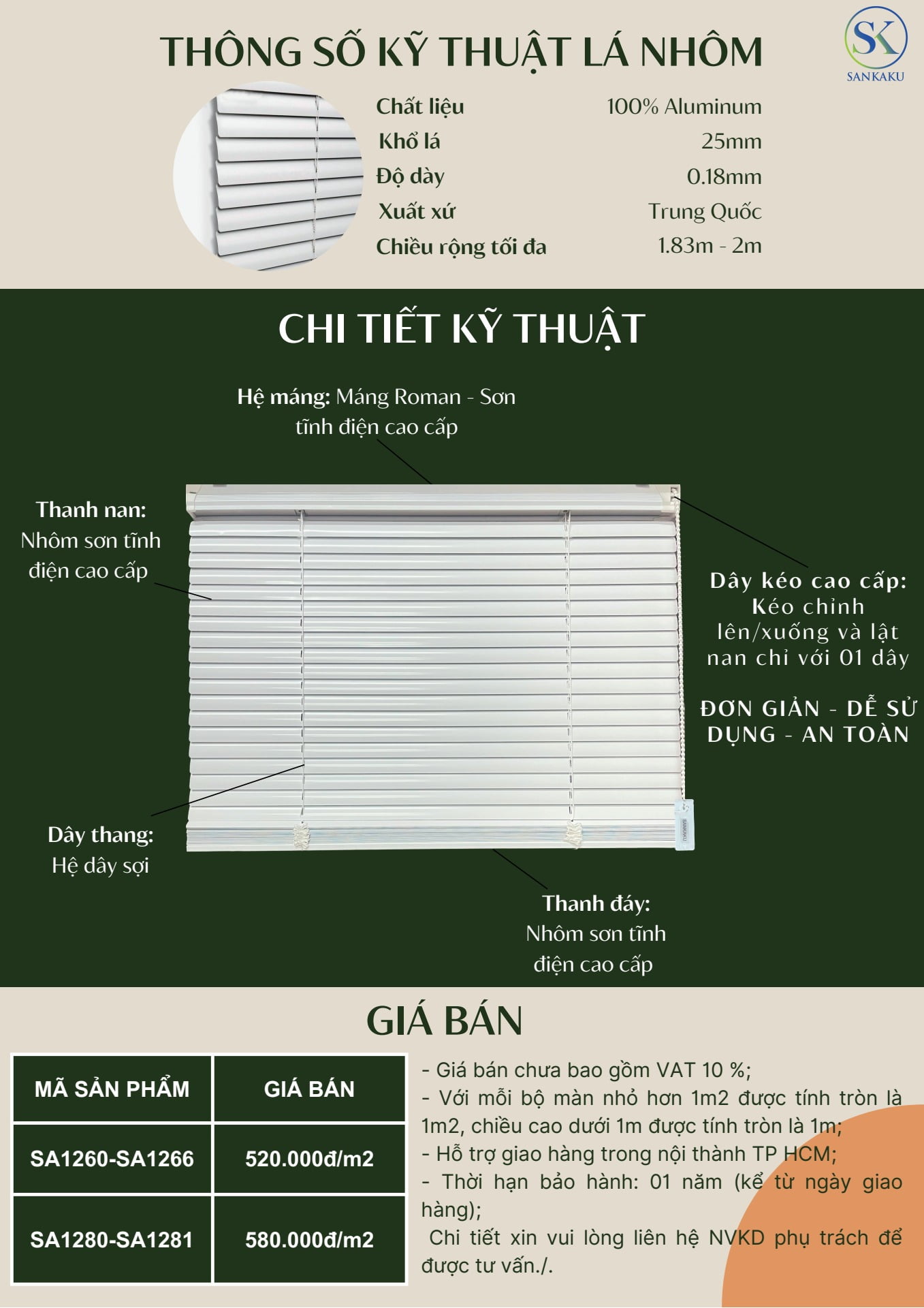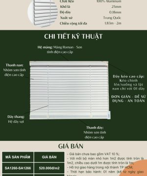 | SA1260 – SA1269 | Hệ kéo 1 dây – Vân trơn | 25 x 0.18 (mm) | 365.000 |