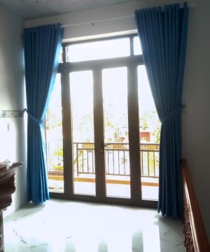 - Lớp voan trắng có họa tiết dùng để trang trí và lấy ánh sáng giúp cho ngôi nhà kín đáo nhưng vẫn có ánh sáng mặt trời.
