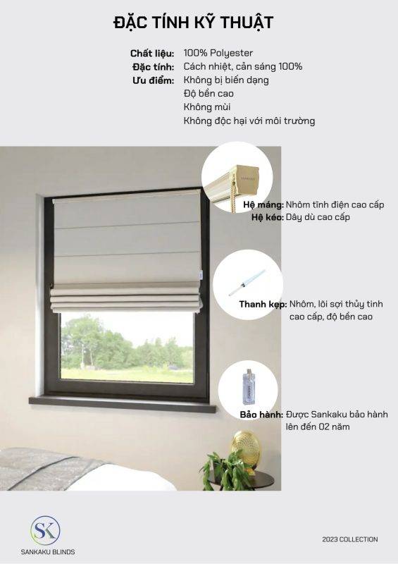 - Kiểm soát ánh sáng và riêng tư: Rèm Roman cho phép kiểm soát lượng ánh sáng và cung cấp mức độ riêng tư phù hợp, tuỳ thuộc vào cách bạn điều chỉnh rèm.